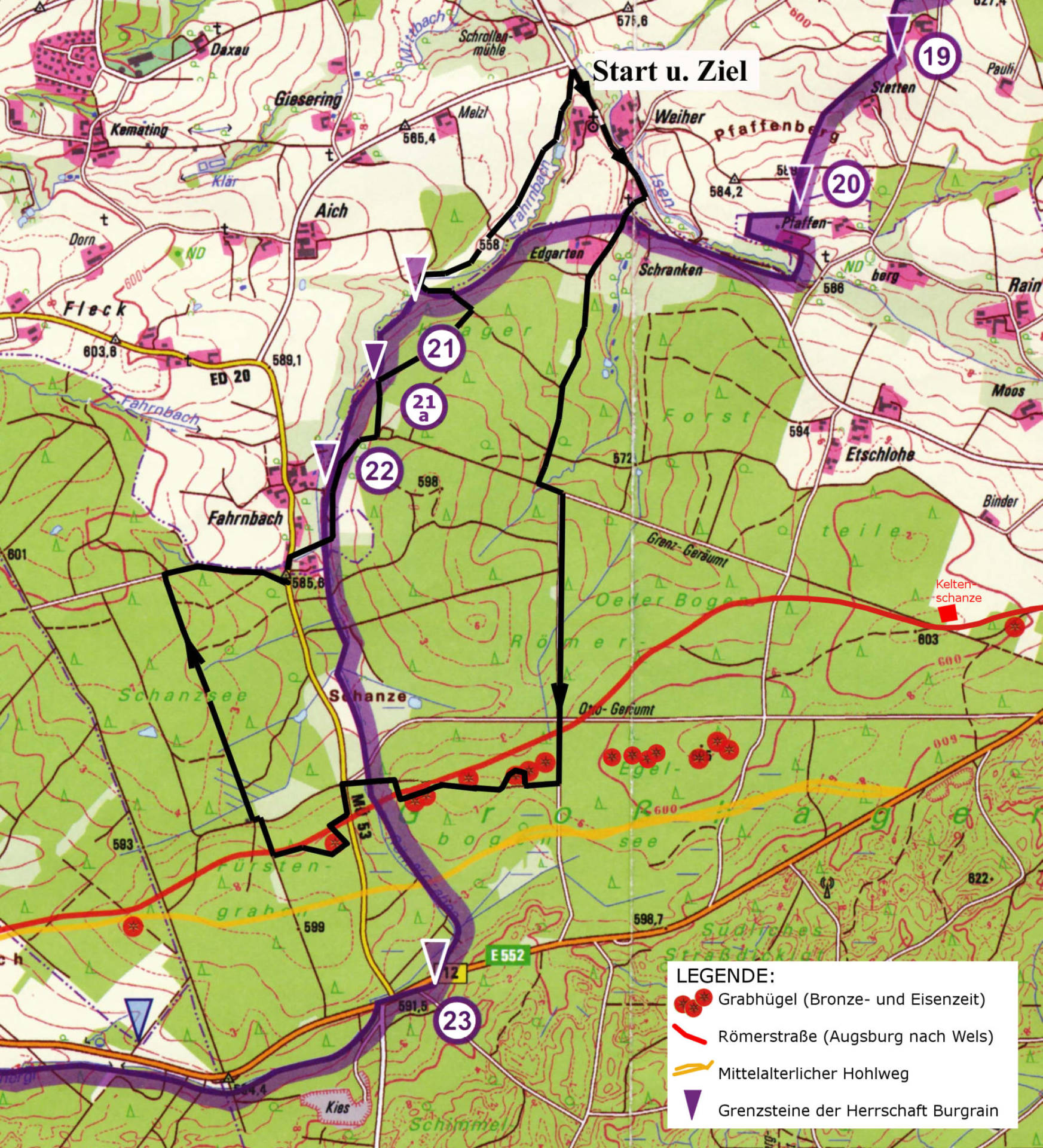Karte zur Wegstrecke: https://archaeologischer-verein-erding.de/veranstaltung/8-grenzsteinwanderung-entlang-der-grenze-der-ehemaligen-herrschaft-burgrain/karte/