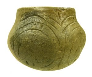 Typisches Gefäß der „Linienbandkeramischen Kultur“ mit der namengebenden Verzierung aus Niederpöring (Lkr. Deggendorf). Foto: J. Pechtl.